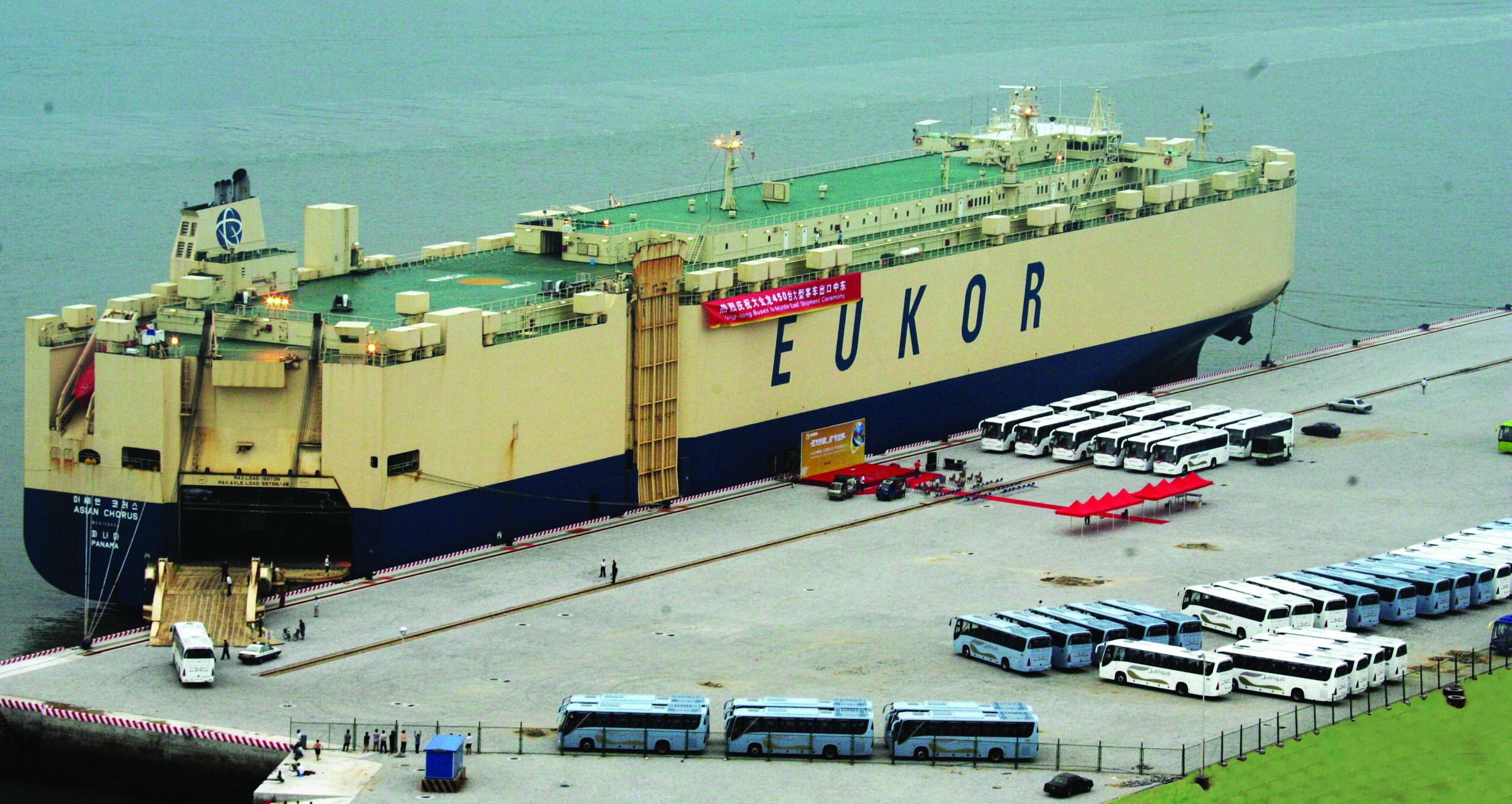 2005.8大金龍600輛大型客車出口中東裝船儀式在廈門東渡碼頭舉行