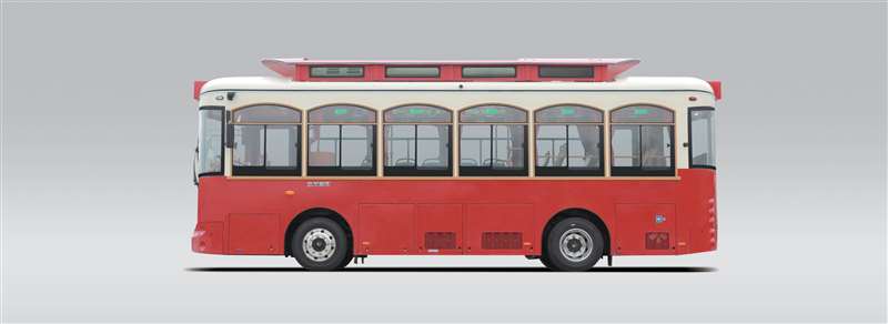 金龍純電動鐺鐺車以迎合現代審美的方基調和小圓角的造型設計,輔以圓潤的弧線造型,構建出金龍純電動鐺鐺車獨一 無二的復古風情。分體式小圓燈、弧形書本造型的前后圍風擋和復古窗框裝飾造型的乘客推拉窗......于匠心巧思之中重 現永不褪色的經典印記。
