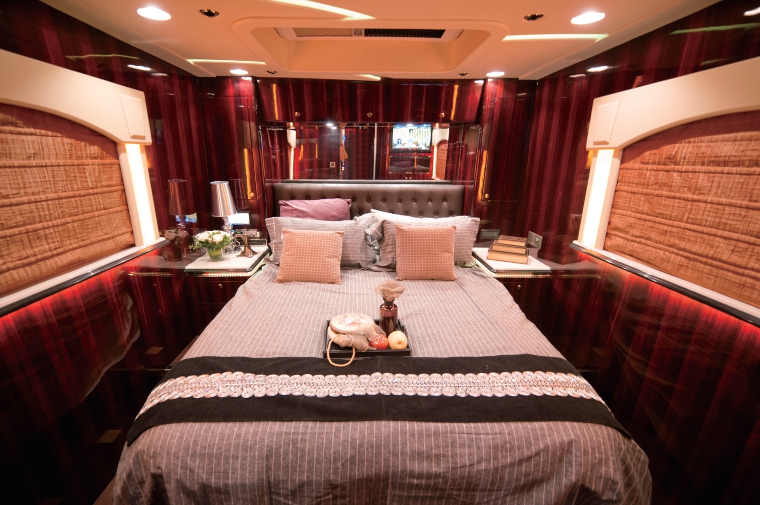 尾部豪華雙人大床有移門隔斷,確保睡眠空間私密性。
