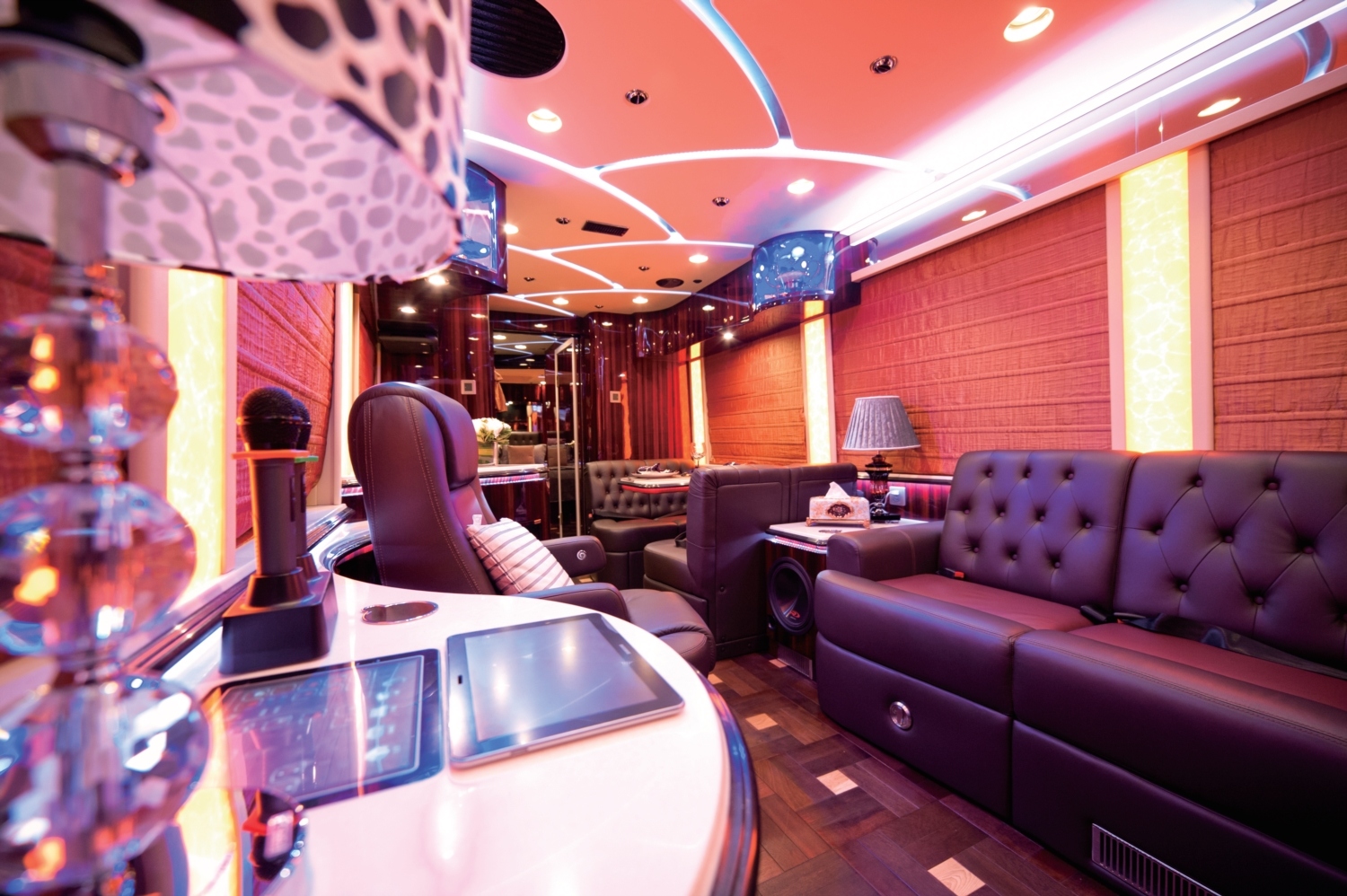 內置氛圍燈帶和 KTV點唱系統,兼具商務接待功能。