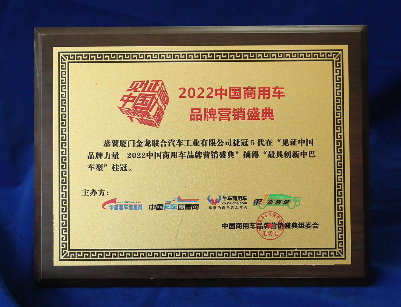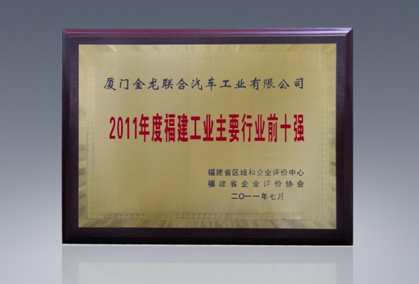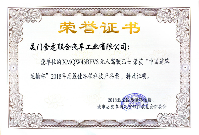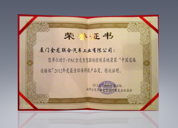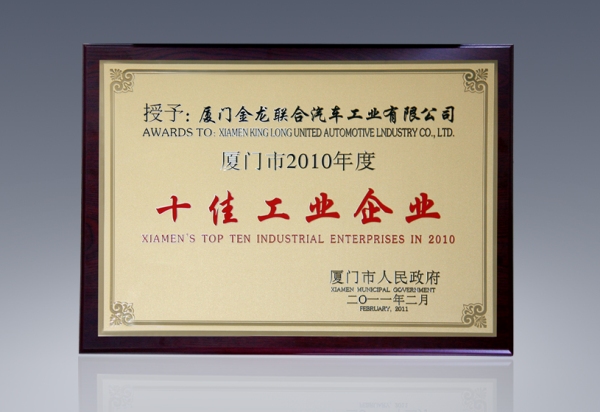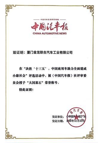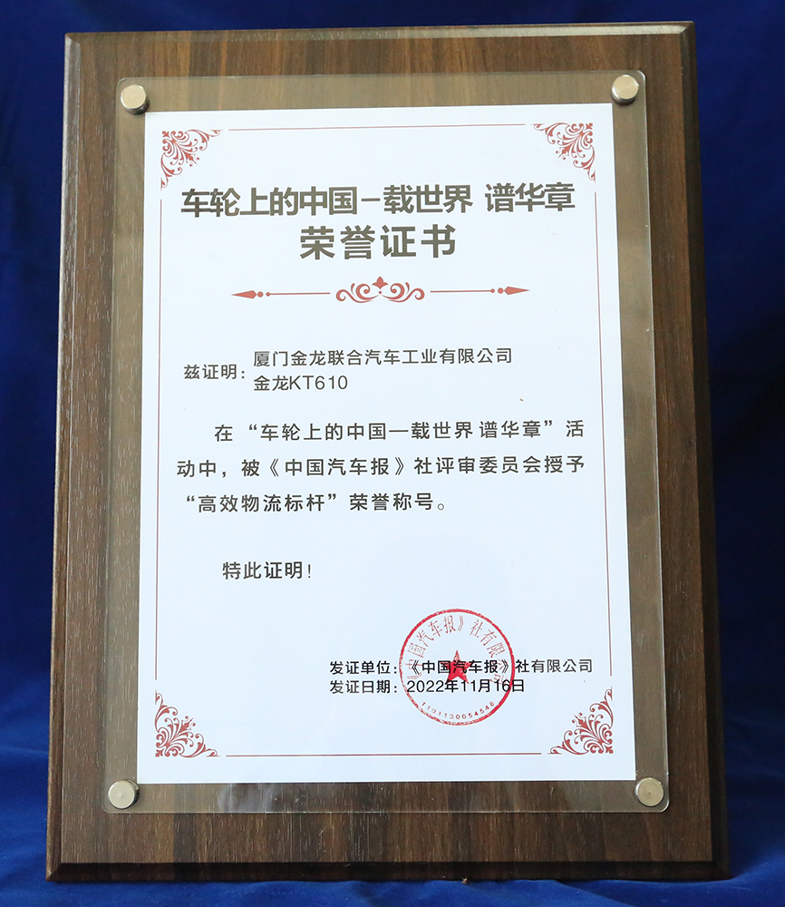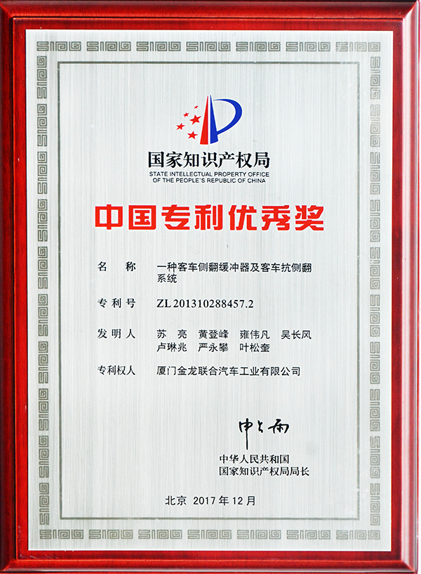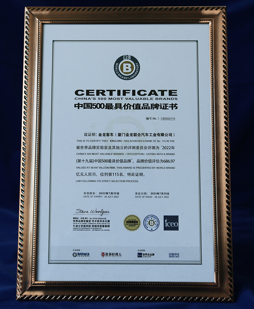2017-中國客車工業60周年榮譽證書-十大公路-旅游客車-XMQ6129Y