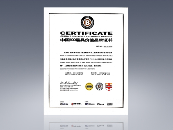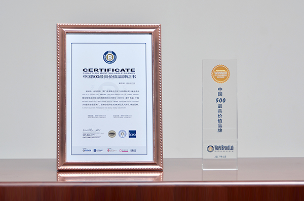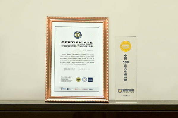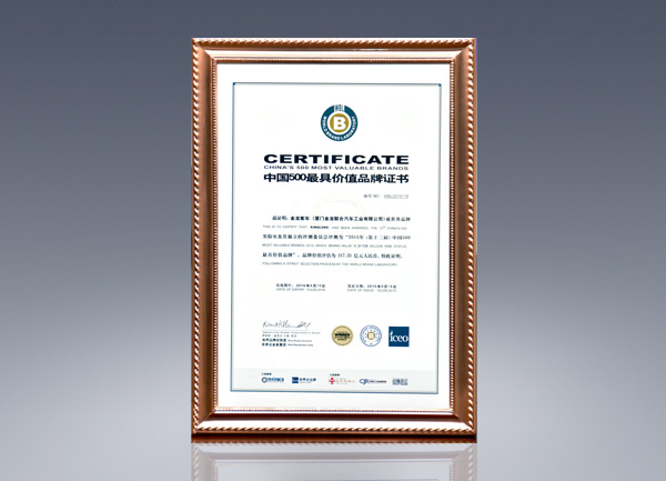 2015-中國500最具價值品牌證書