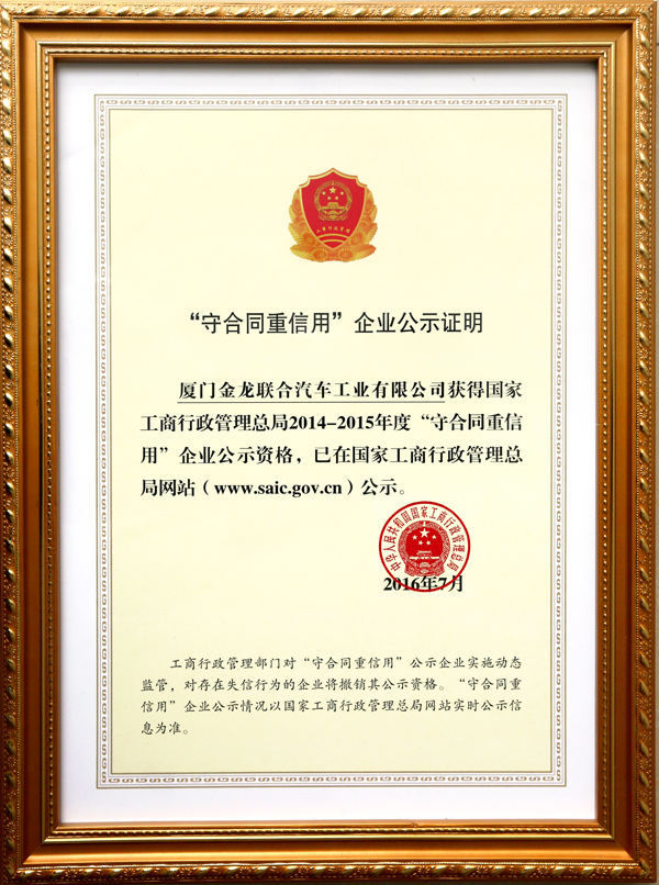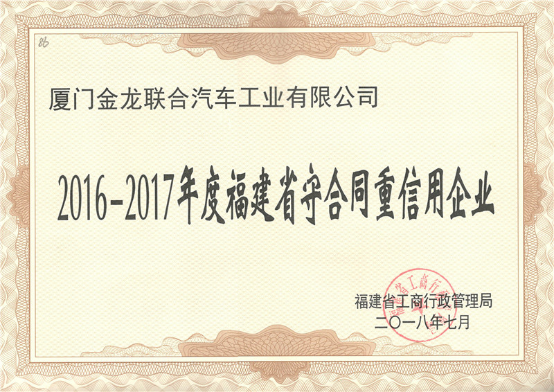 2016-2017福建省重合同守信用證書