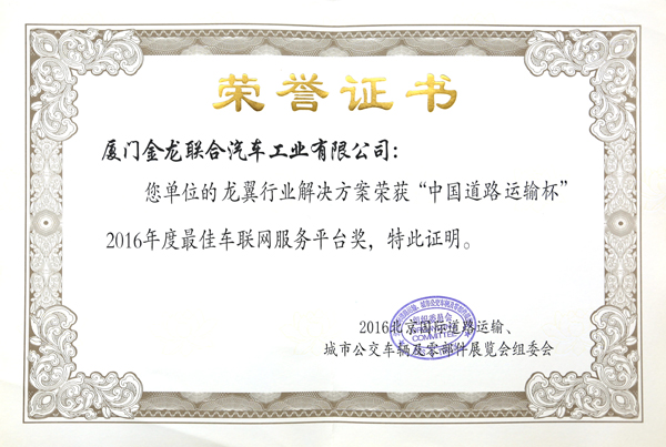 2016年度最佳車聯網服務平臺獎(龍翼行業解決方案)