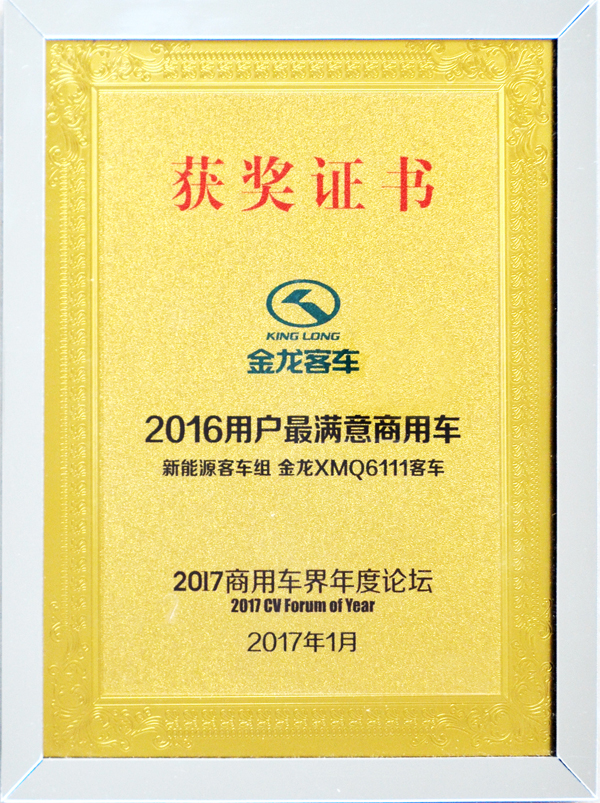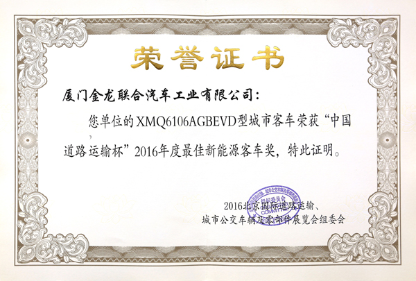 2016年度最佳新能源客車獎(XMQ6106AGBEVD)