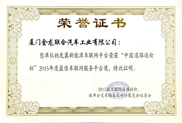 2015年度最佳車聯網服務平臺獎龍翼新能源車聯網平臺