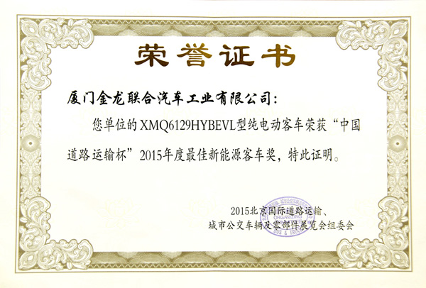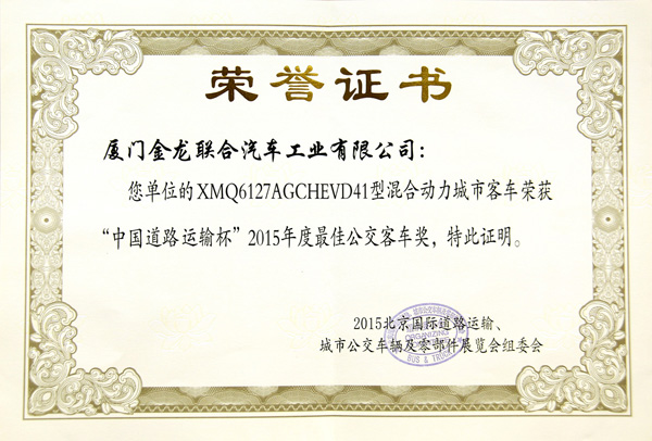 2015年最佳新能源客車獎XMQ6129HYBEVL