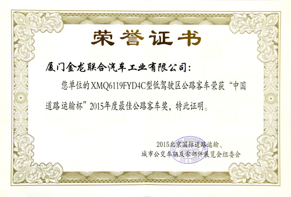 2015年度最佳公路客車獎XMQ6119FYD4C