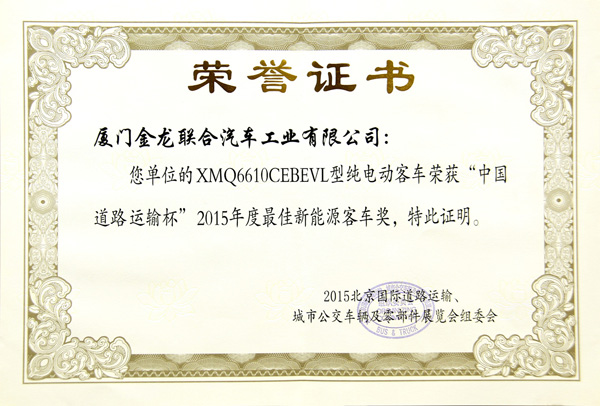 2015年最佳新能源客車獎XMQ6610CEBEVL