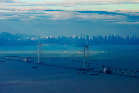 這條連接深圳與中山的跨海通道,全長約24公里,雙向八車道,設計時速100公里,是當前世界上綜合建設難度最高的跨海集群工程。