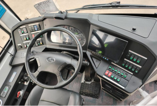 此次深中跨市公交車選用的是金龍捷冠5代公交版車型,根據運營需求,取消了乘客站立區,座椅設計為42座,實行“一人一座”,保障乘客出行安全;駕駛室則專門配置了駕駛員行為識別儀,能夠實時監測和分析駕駛員的行為,如疲勞駕駛、分心駕駛等情況,并及時發出警告,確保駕駛員始終保持在最佳狀態,提升行車安全性。