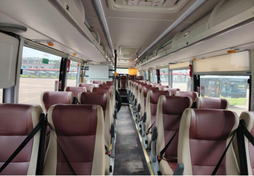 在舒適體驗方面,金龍捷冠5代在座椅布局上進行調整,座椅前后間距在國際標準的基礎上增加到80~86厘米,左右間距則可以通過拉動座椅底部按鍵進行調整,形成舒適且靈活的座椅布局;同時,車內配置了行李架、水杯架等便捷設施,并設置了USB充電口,竭力為乘客打造舒適便捷的出行環境。