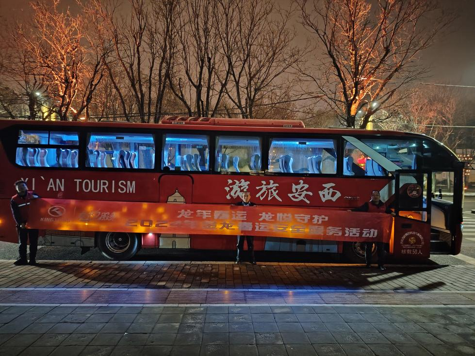 此次的客戶負責春晚西安分會場演職人員的運輸任務,由于演職人員排練時間都在晚上甚至凌晨,室外寒風凜冽,不僅要全力保證出行安全,更要為演職人員提供舒適、溫暖的乘車體驗。金龍服務人員對車輛暖風系統進行詳細排查,確保暖風系統能夠正常運行,在這寒冷的冬夜里為奮戰在舞臺崗位的演職人員提供溫暖。