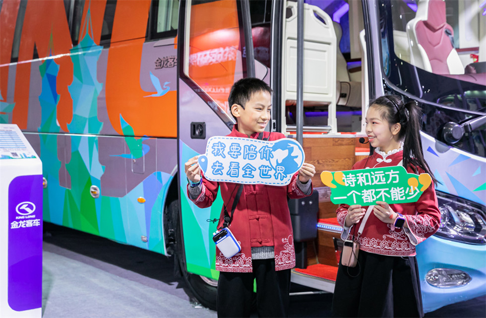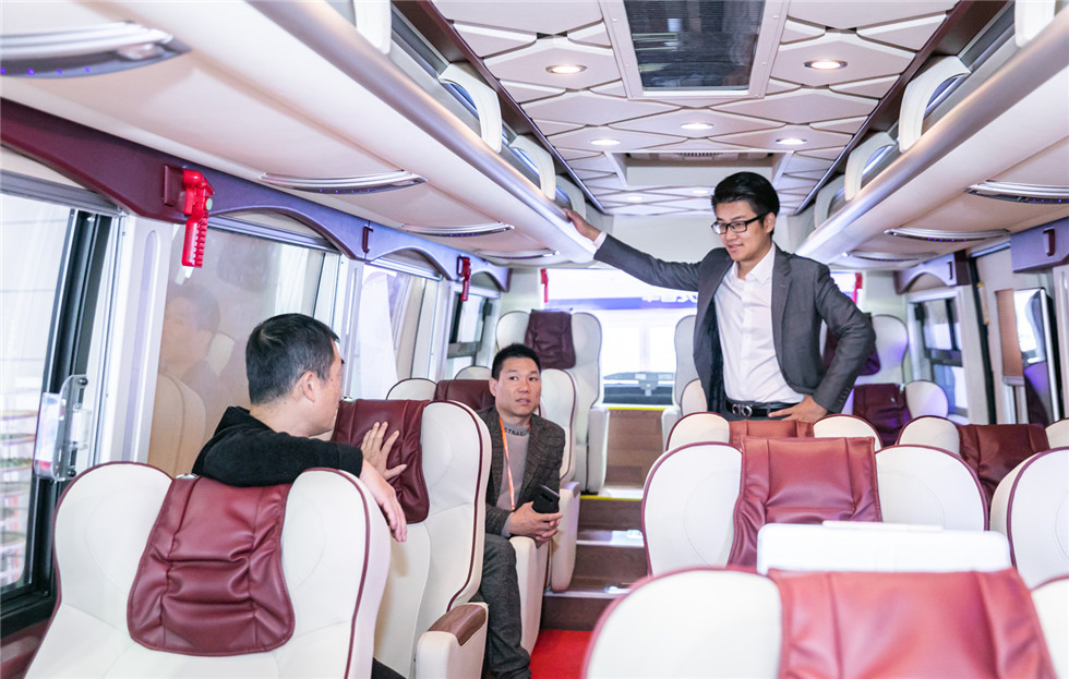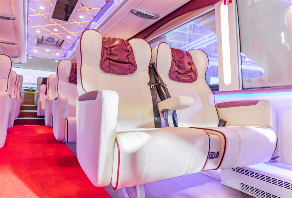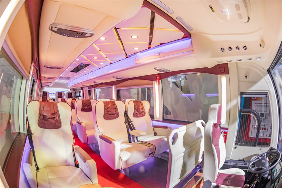 高鐵、航空等大交通的發展,極大推動了旅游業的發展。而隨著消費升級,大眾對高品質生活方式及高端旅游體驗的需求同樣在增長,旅游客運市場對高端車型青睞有加。此次參展的金龍高端商務旅游車——金龍商務版捷冠3S展現了行業對于高端商務旅游車的完美詮釋:時尚的外觀造型、輕奢的內飾風格、愜意舒適的駕乘環境及人性化的貼心配備,引得現場觀眾紛紛上車親身體驗。