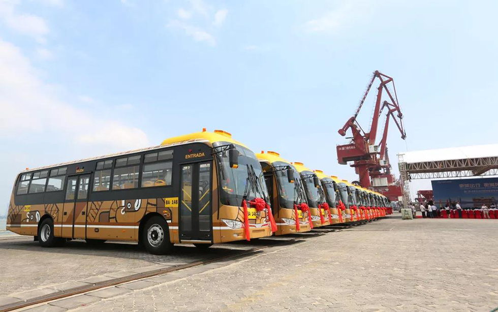 8月10日, “更美出行,更美風景——金龍客車出口玻利維亞交車儀式”在廈門現代碼頭隆重舉行。玻利維亞首都拉巴斯市市長路易斯·雷比亞萬里迢迢率領代表團親臨廈門迎接他們的出行“老朋友”——第三批交付玻利維亞的金龍客車。儀式現場,廈門市副市長李輝躍向拉巴斯市市長路易斯·雷比亞交接了金鑰匙,并對拉巴斯城市提升共公交通服務以及與金龍客車深化戰略合作表示祝賀。
