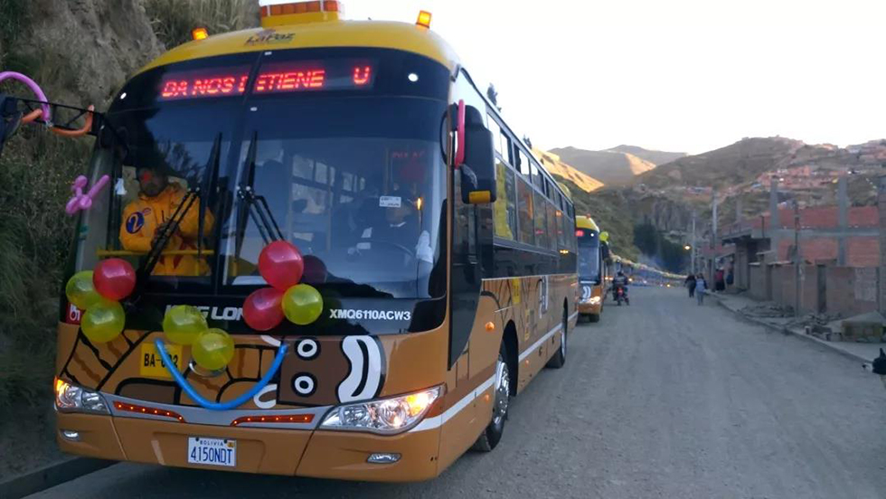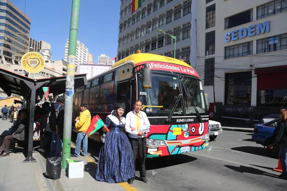 在拉巴斯,金龍客車已深深融入當地民眾出行。每一條金龍客車公交線路運營時,都會引發當地民眾的狂歡,他們自發地精心打扮金龍客車,用歡歌熱舞慶祝金龍客車的到來,猶如盛大的節日。
