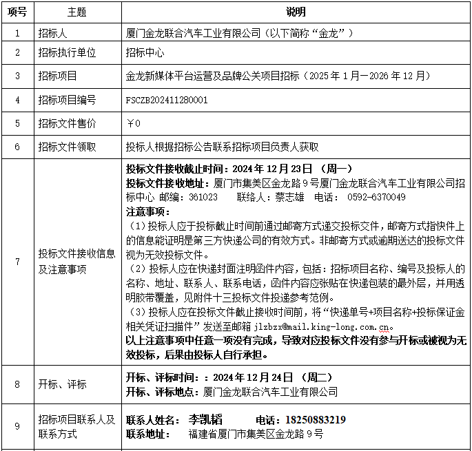 金龍新媒體平臺運營及公關(guān)傳播服務(wù)項目公開招標(biāo)公告