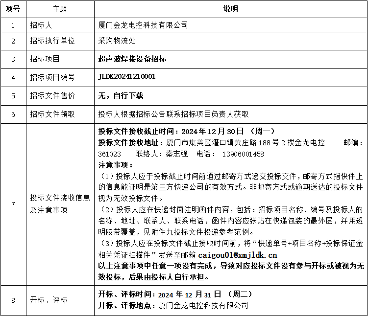 超聲波焊接設(shè)備公開(kāi)招標(biāo)公告